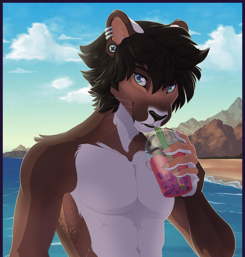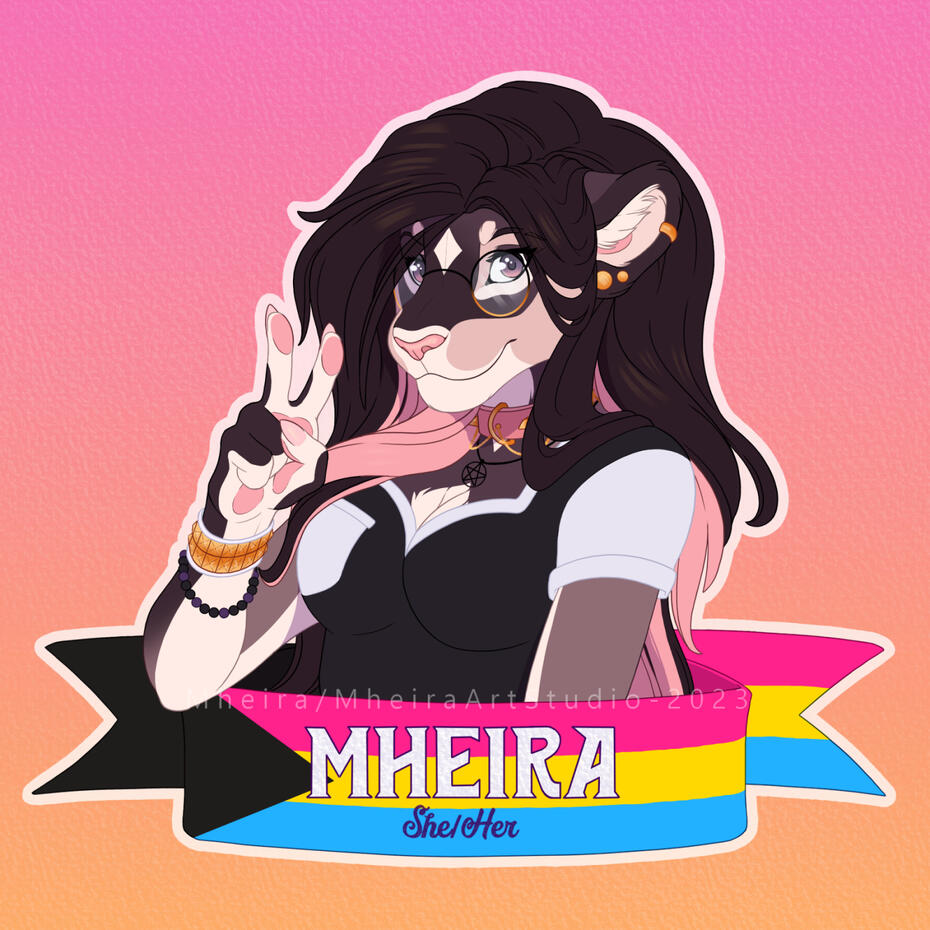 170$A portrait of your character with clean colored lines, minimal shading, light and hair details, name, optional pronouns, optional flag banner, simple background and QR code at the back.[digita only, currently unavailable for physical versions + shipping, I am saving to aquire the proper equipment.]